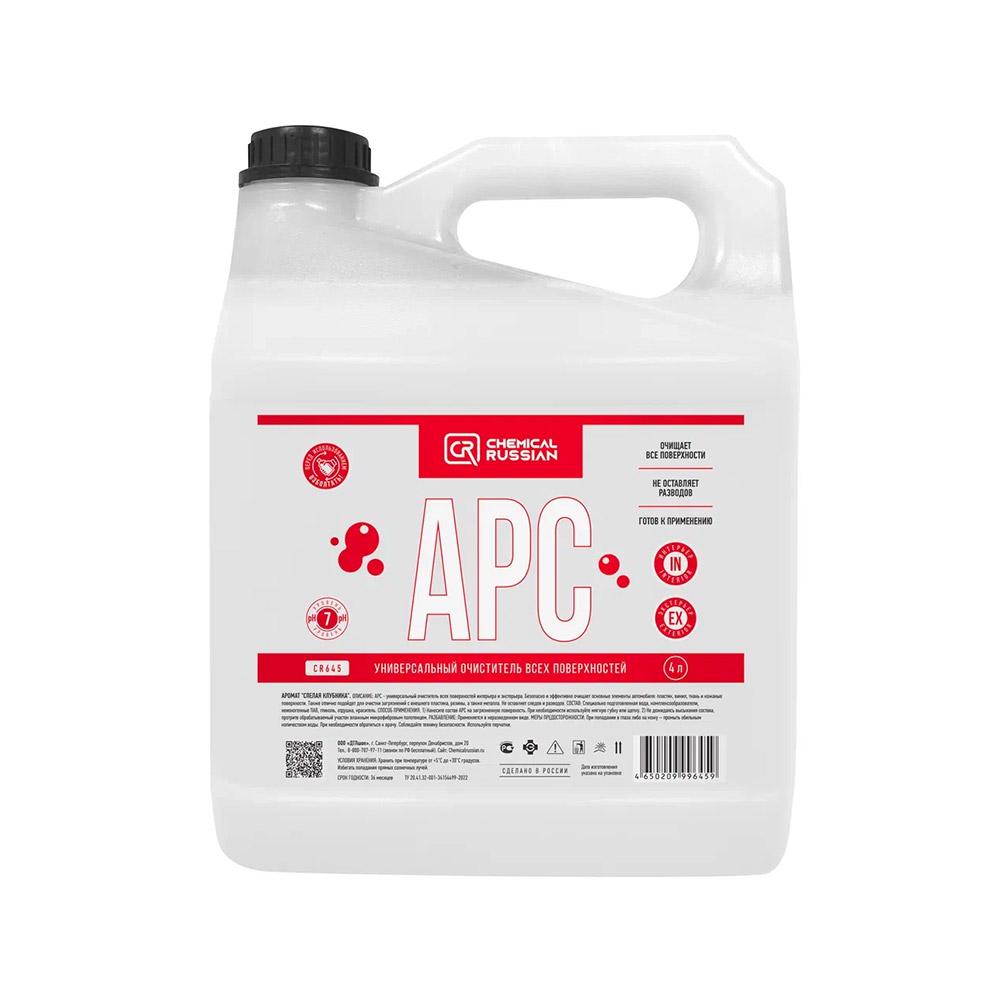 Выбирая Chemical Russian APC, вы получаете не просто средство для очистки, а надежного помощника в поддержании безупречной чистоты вашего автомобиля. Этот продукт объединяет в себе передовые технологии и заботу о вашем комфорте, делая процесс ухода за авто простым и приятным.