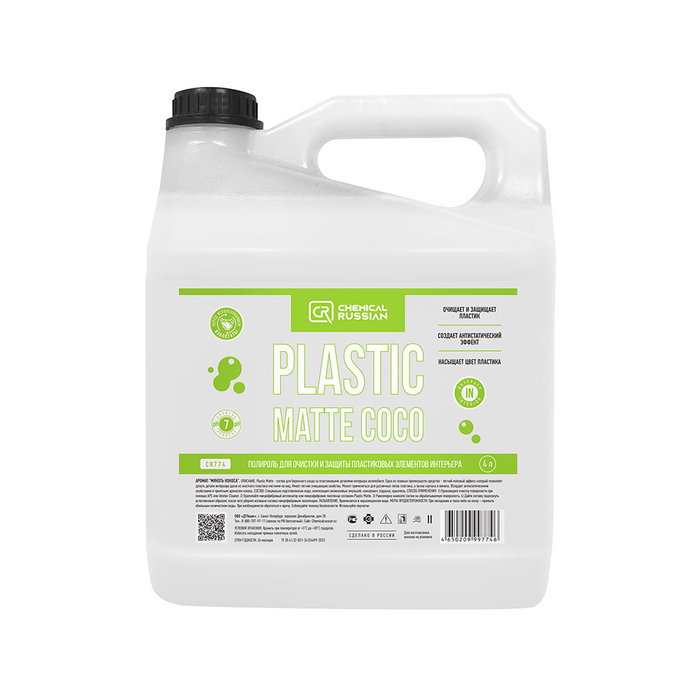 Откройте для себя идеальное средство для ухода за пластиковыми деталями интерьера вашего автомобиля! Полироль Plastic Matte от Chemical Russian — это не просто средство для чистки, это ваш надежный союзник в поддержании идеального состояния салона. Легкие очищающие свойства и способность работать с разнообразными поверхностями, такими как каучук, винил и пластик, делают этот продукт незаменимым. Антистатические свойства и матовый эффект придают салону изысканность, а приятный аромат добавляет комфорта.