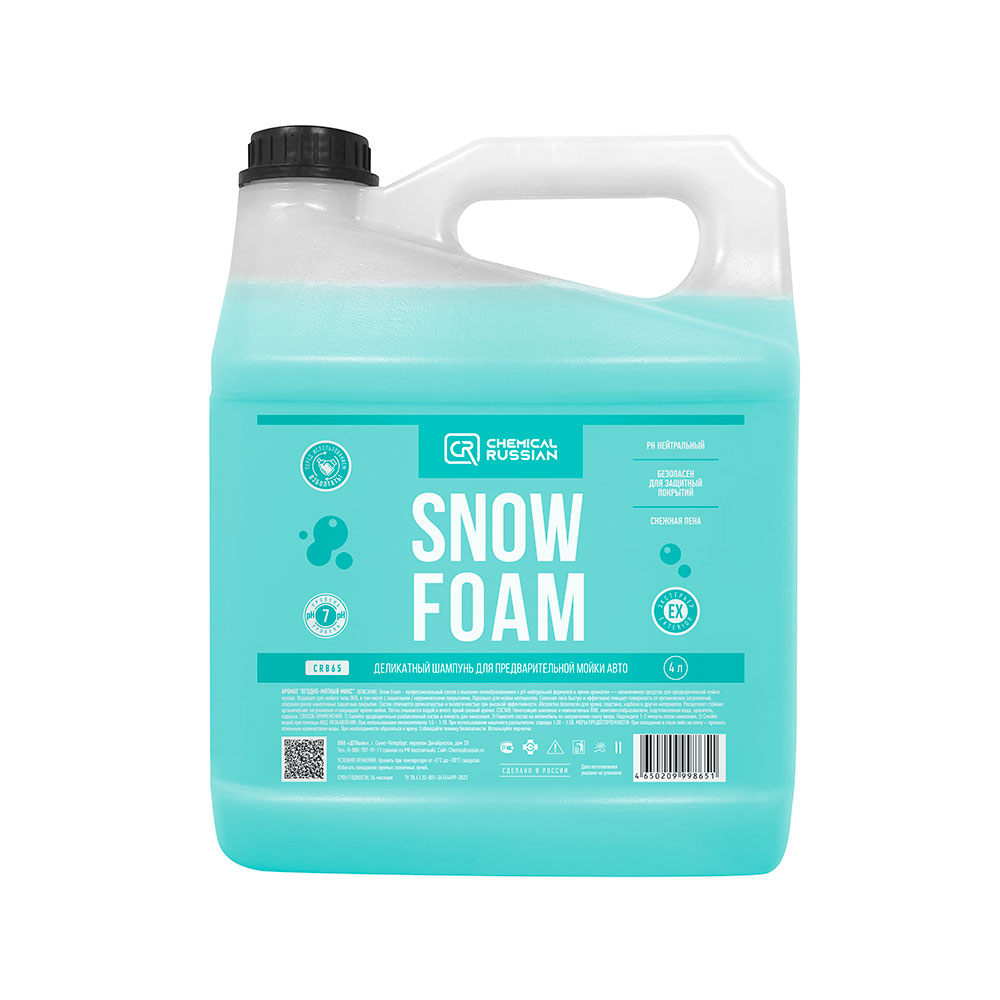 Приобретая Snow Foam PreWash, вы выбираете качество и надежность от Chemical Russian. Этот шампунь не только облегчает уход за автомобилем, но и сохраняет его защитные покрытия в первозданном виде. Наслаждайтесь каждым мгновением ухода за своим автомобилем!